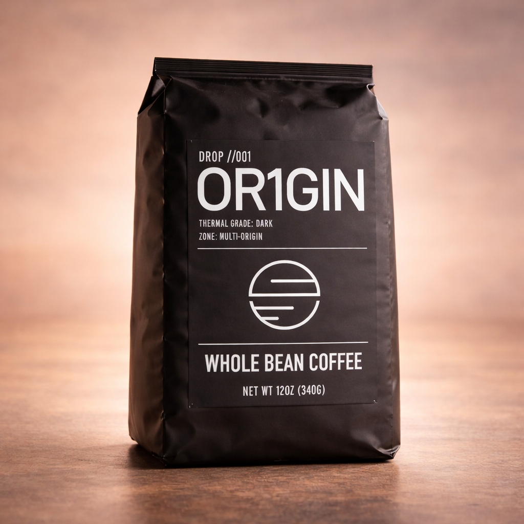 Dark roast house blend delivering cocoa depth and restrained sweetness. Full-bodied with a composed, authoritative character.